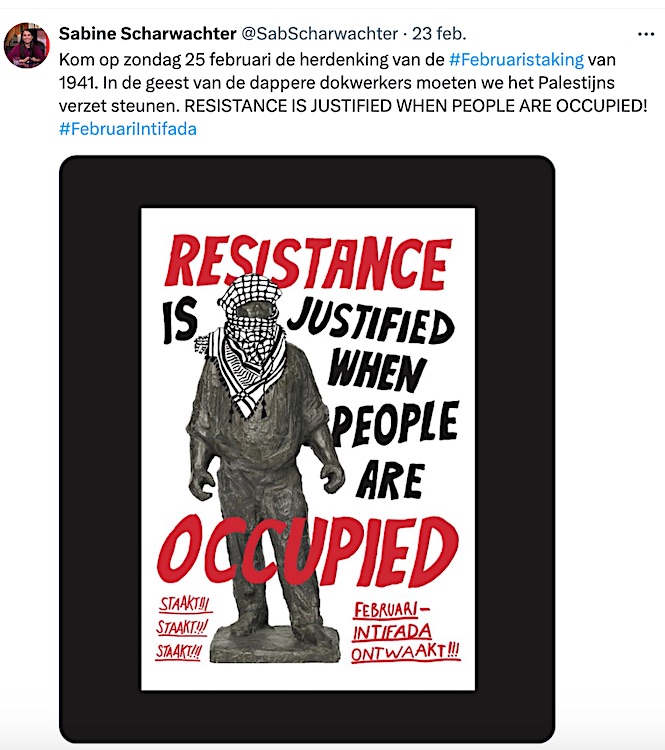 Wat we herdenken op 25 februari is dat mensen met gevaar voor eigen leven het werk stil legden om te protesteren tegen de - deels door het Nederlandse overheidsapparaat gefaciliteerde - grootschalige jodenvervolging. In onze tijd wordt er opnieuw een volk uitgeroeid, en opnieuw speelt de Nederlandse overheid een faciliterende rol. Deze keer is het Israël die genocide pleegt op de Palestijnen.